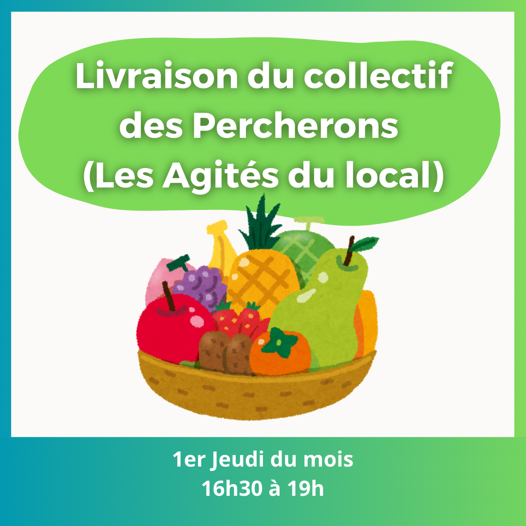 Réception et distribution mensuelle des produits du collectif des Percherons par les membres de l’épicerie associative « Les Agités du local ».